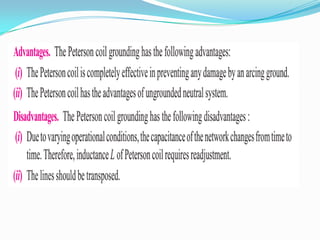 This document provides an overview of the EE2402 Protection & Switchgear course presented by C.Gokul. It includes the course syllabus, units covered, textbook references and introductory content on power system basics, components, faults, protection elements, relay terminology and essential qualities of protection systems. The key topics discussed are types of faults in power systems, importance of protective schemes, elements of a protection system including current transformers, voltage transformers, relays and circuit breakers. Neutral earthing methods with a focus on Peterson coil are also introduced.