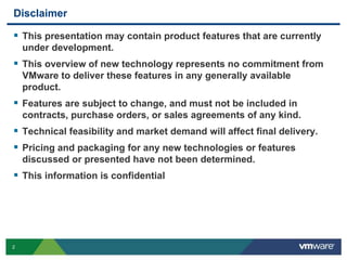 This document summarizes a technical update presentation on vSphere Replication and Site Recovery Manager (SRM). It discusses vSphere Replication capabilities for replication within or across sites. It also recaps SRM, which provides additional automation for disaster recovery. New features covered include support for storage vMotion on protected VMs and multi-point-in-time recovery using VM snapshots. The presentation addresses common questions and outlines the benefits of using vSphere Replication with or without SRM.