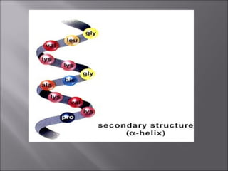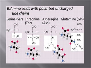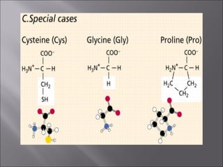 Dokumen ini membahas tentang protein, yang merupakan konstituen organik utama dalam otot, serta komposisi, struktur, dan fungsinya. Protein tersusun dari asam amino dan memiliki berbagai peran biologis, termasuk sebagai enzim, hormon, dan antibodi. Terdapat klasifikasi protein berdasarkan fungsi dan komposisi, serta pengaruh struktur asam amino dalam sifat dan reaksi protein.