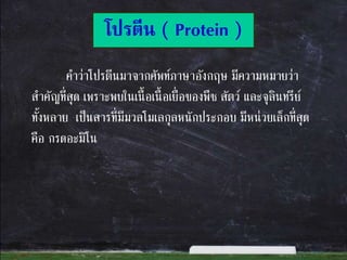 คำว่ำโปรตีนมำจำกศัพท์ภำษำอังกฤษ มีควำมหมำยว่ำ