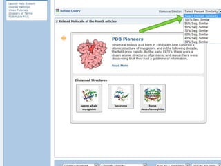The Protein Data Bank (PDB) is a single worldwide database that stores 3D structural data of proteins and nucleic acids. It is operated by Rutgers University, the San Diego Supercomputer Center, and the Research Collaboratory for Structural Bioinformatics. The PDB is freely accessible online and contains over 76,000 biomolecular structure entries as of 2011. It uses a common file format to represent structural data and is updated weekly as new entries are submitted by researchers.