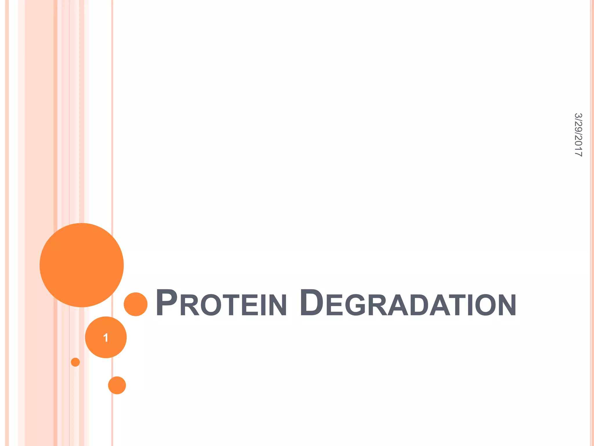 The document discusses protein degradation, highlighting the importance of constant degradation and half-lives of proteins, particularly those that are rapidly degraded and function as regulatory molecules like transcription factors. It outlines signals for degradation, including alterations by oxidation and ubiquitin tagging, and describes the ubiquitin-proteasome pathway and lysosomal proteolysis. The document concludes with multiple-choice questions related to the content covered.