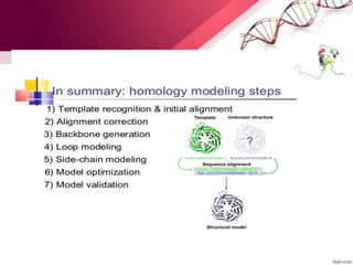 The document provides a comprehensive overview of protein structure and analysis, highlighting the significance of amino acids, the formation of peptide bonds, and the relationship between protein structure and function. It outlines the different levels of protein structure, including primary, secondary, tertiary, and quaternary, as well as the techniques for determining 3D structures, such as X-ray crystallography and NMR studies. Additionally, it discusses protein modeling techniques, including homology and threading modeling, emphasizing their importance in understanding protein functions and designing drugs.