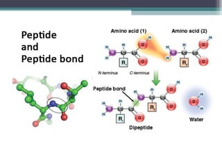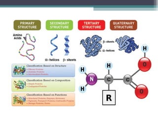 The document provides an in-depth exploration of proteins and amino acids, detailing their definitions, classifications, properties, and functions. It emphasizes that proteins are polymers made of amino acids, with a focus on the 20 standard amino acids crucial for biological functions, including their stereochemistry and isoelectric properties. Additionally, the document discusses various classifications of amino acids based on structure, nutritional requirements, and metabolic fate while highlighting their significance in physiological processes and protein synthesis.