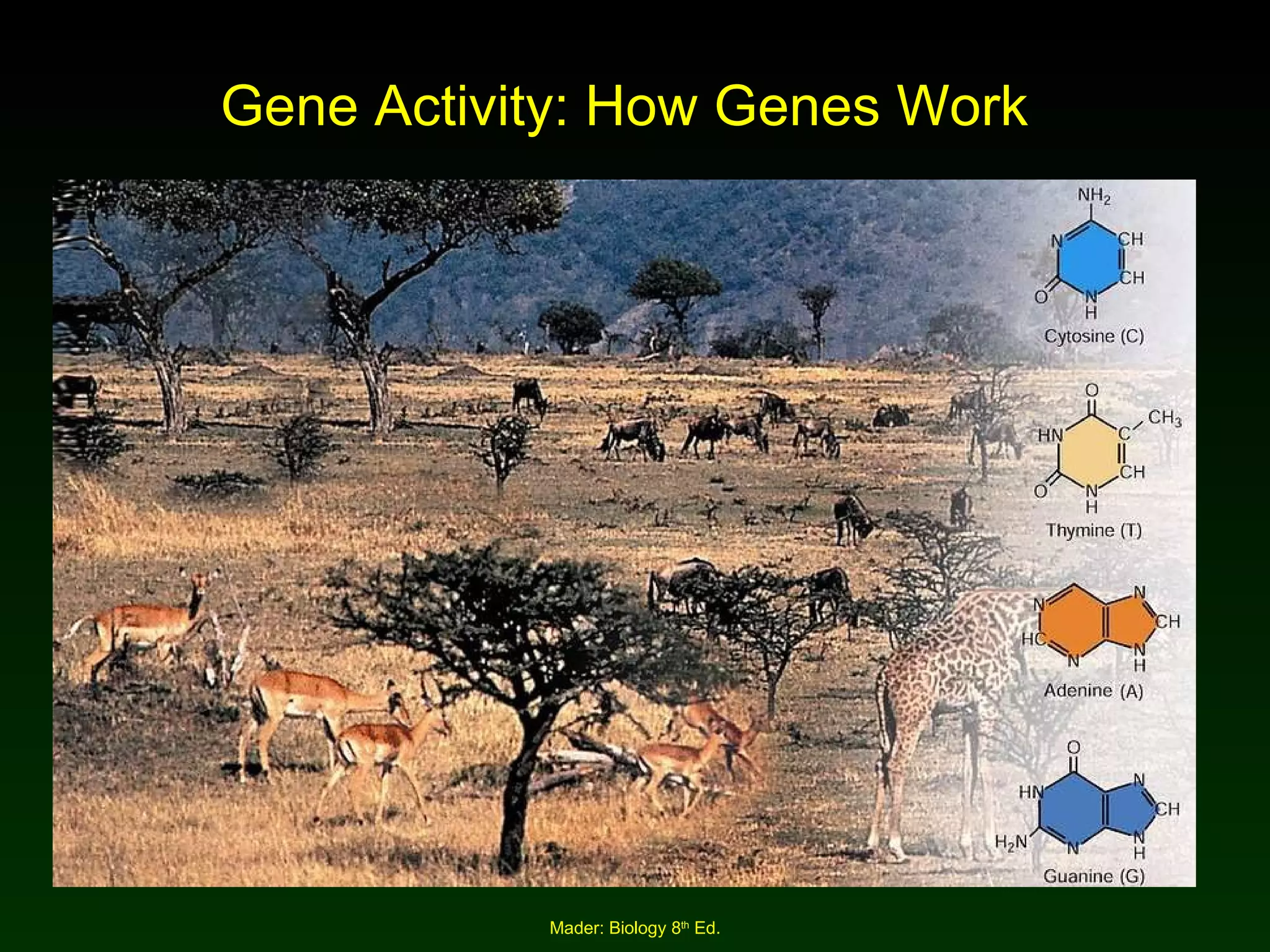 The document summarizes the process of gene expression from DNA to protein. It discusses how genes provide the code for proteins, the central dogma of DNA to RNA to protein, the types and roles of RNA including mRNA, tRNA and rRNA. It then explains the steps of transcription, processing of mRNA, translation, the genetic code and the role of transfer RNA and ribosomes in protein synthesis.