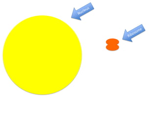 The document describes the process of protein synthesis which occurs in two main steps: transcription and translation. In transcription, RNA polymerase unwinds DNA and mRNA matches the DNA bases, then breaks away and passes through nuclear pores. In translation, the mRNA interacts with ribosomes which read the mRNA and create tRNA anticodons corresponding to each codon to string together amino acids into a protein.