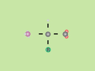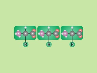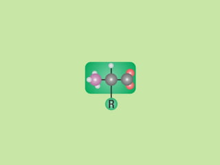 Dokumen ini menjelaskan tentang protein sebagai biomolekul besar yang tersusun dari asam amino, dengan fokus pada 20 jenis asam amino yang bersifat proteinogenik. Proses pembentukan protein dari asam amino melibatkan ikatan peptida dan struktur yang kompleks, termasuk level primer hingga kuartener. Selain itu, protein dibedakan menjadi dua jenis utama: globular yang larut dalam air dan fibrosa yang tidak larut serta berperan dalam struktur tubuh.