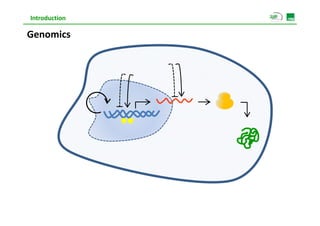 Proteomic analysis involves fractionating and enriching cells or tissue to isolate proteins, then further breaking the proteins into peptides. The peptides are separated using chromatography and introduced into a mass spectrometer to determine their mass-to-charge ratios. Data-dependent acquisition is used to automatically select peptides for fragmentation and sequencing to identify the proteins present. Proteomics provides information about protein expression levels, post-translational modifications, interactions, and dynamics that complement genomics and transcriptomics data.