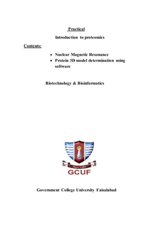 The document discusses protein 3D structure determination using computational modeling software. It describes different computational modeling methods like homology modeling, threading/fold recognition, and ab initio modeling. Homology modeling involves comparing the target sequence to known protein structures while threading/fold recognition compares the target to known structural templates. Ab initio modeling produces structures based only on the sequence. Popular software tools for each method are discussed like Modeller, SwissModel, I-TASSER, and Rosetta. The document also provides an overview of using nuclear magnetic resonance (NMR) spectroscopy to study protein structures experimentally.