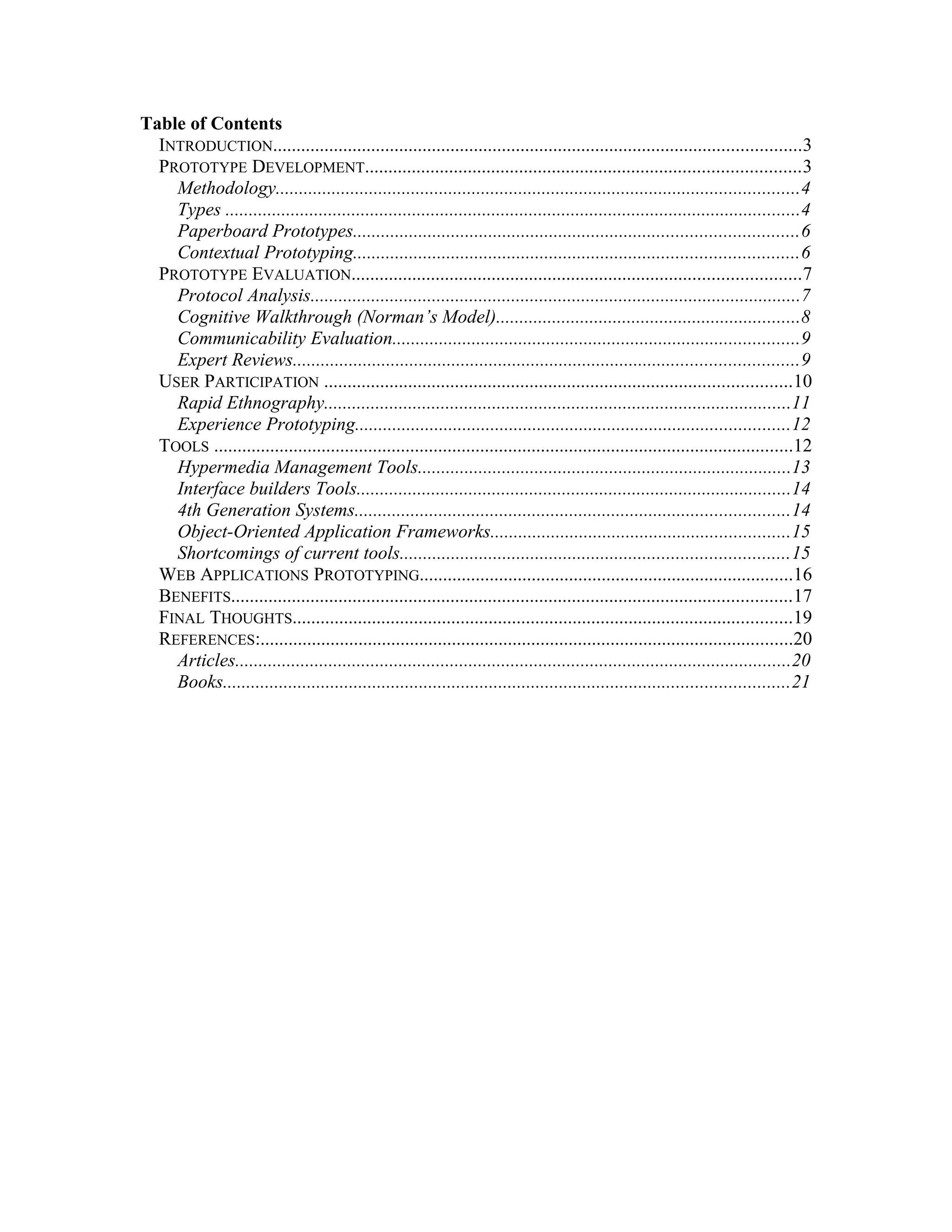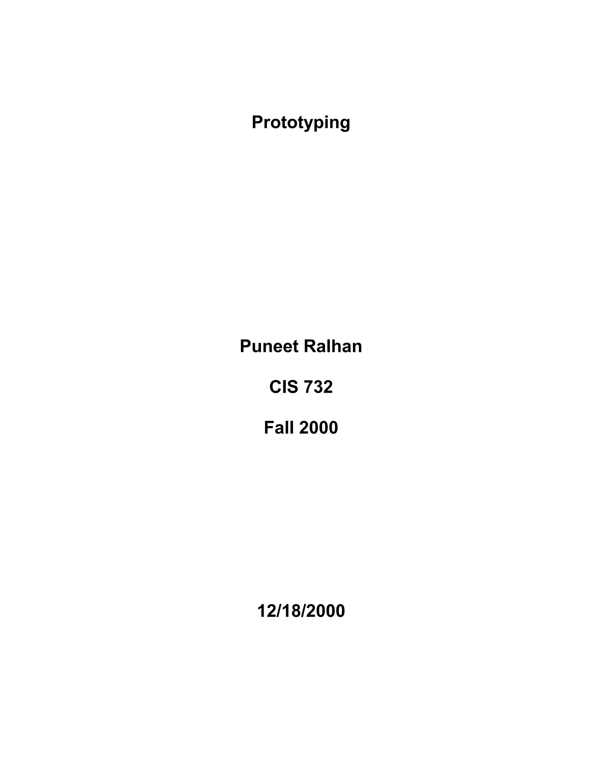 The document discusses various aspects of prototyping, including prototype development methodologies, types of prototypes, evaluation techniques, and tools used in prototyping. Specifically, it covers methodology for prototype development, types of prototypes like throwaway, evolutionary, and incremental prototypes. It also discusses techniques for prototype evaluation like protocol analysis and cognitive walkthroughs, and the benefits of prototyping for software development.