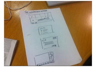 The document discusses Leisa Reichelt's approach to prototyping, which involves quickly testing ideas through multiple prototypes rather than extensive documentation. She advocates forming a multidisciplinary team to create prototypes moving from sketches to HTML to test content and get early user feedback. Prototypes should be used to test both qualitative and functional aspects. Iterating quickly allows learning more. This approach can be used with startups, large conservative organizations, and governments to make new things less scary through experimentation.