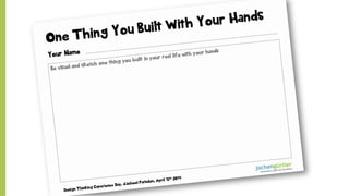 The document discusses the importance of prototyping in problem-solving, emphasizing that it is a collaborative process that encourages rapid iteration and communication within teams. It outlines various prototyping techniques, including role plays, storyboards, and low-fidelity mockups, which help in understanding user experiences and gathering feedback. The key takeaway is that prototyping should be rough and timeboxed to facilitate honest feedback and continuous improvement.