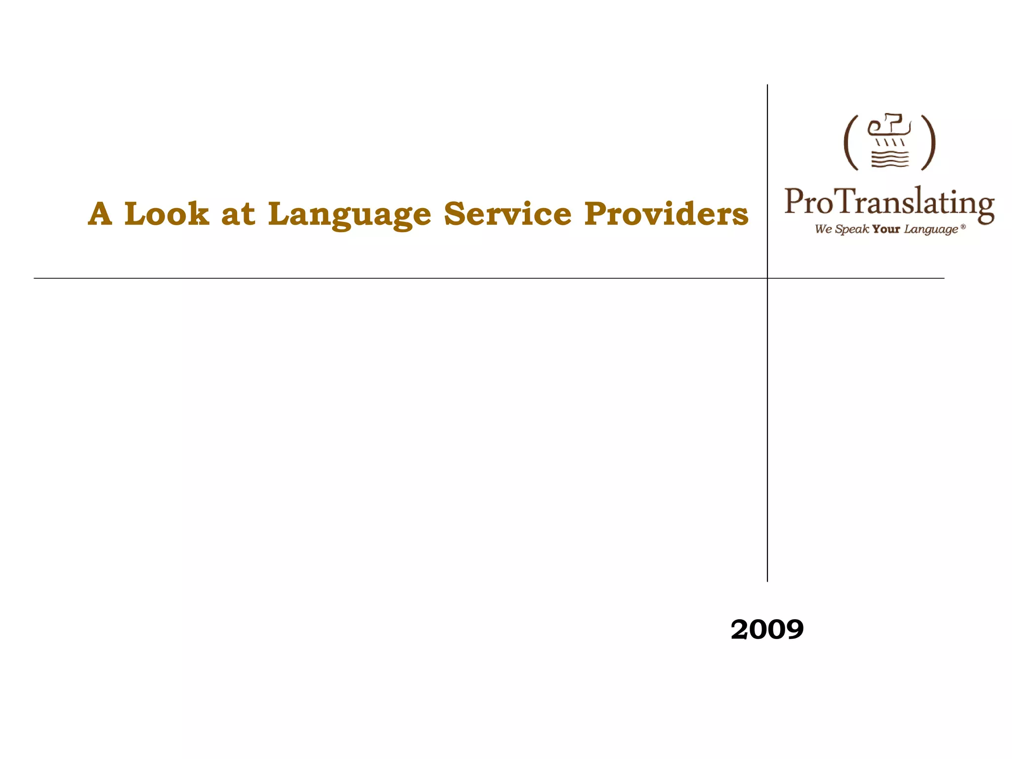 This document discusses language service providers and their importance. It notes that Mandarin Chinese, Hindi, and Spanish are the top languages globally. It outlines reasons to use an LSP, such as their familiarity with legal terminology and ability to minimize misunderstandings. The document also provides tips for choosing an LSP, such as considering their language proficiency, reputation, quality control procedures, accuracy, customer service, and scope of services. It distinguishes between different types of language services like interpreting, translation, and certification.