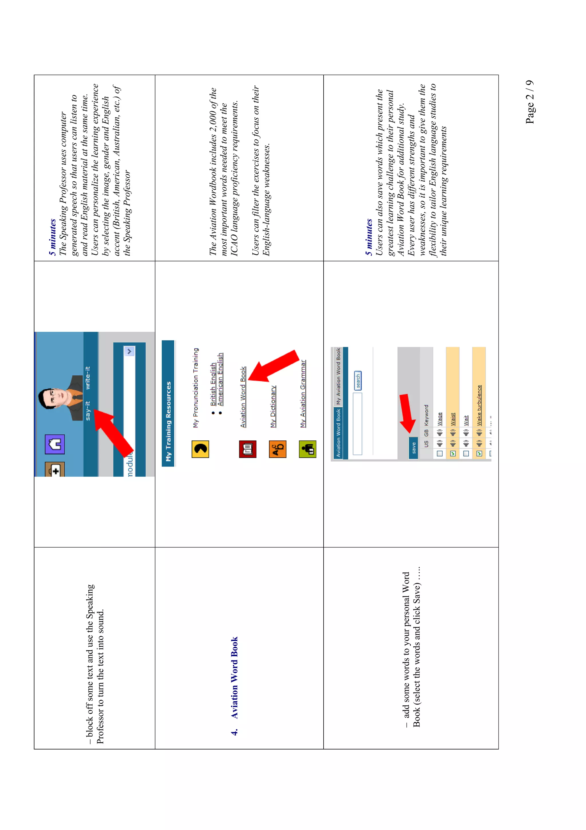 The document provides a suggested study plan to evaluate the Climb Level 4 English language learning program over 4 hours. The plan includes taking an initial assessment, watching tutorial videos, using grammar, vocabulary and pronunciation exercises from modules, and completing listening and speaking exercises. It recommends reviewing results to see individual performance and areas for improvement. The goal is to provide an immersive English learning experience through a variety of interactive exercises to help users meet ICAO language proficiency requirements.