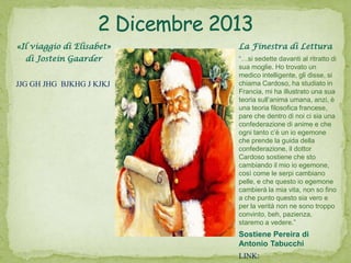 Il documento presenta un'ambientazione natalizia in cui Joakim e suo padre camminano tra le luci festive per acquistare un calendario dell'avvento. Viene inoltre menzionato un passaggio sul significato del suono della campanella, che rappresenta la fede e l'innocenza perduta con la crescita. Infine, si fa riferimento a una teoria filosofica sull'anima umana e l'evoluzione dell'io attraverso esperienze diverse.