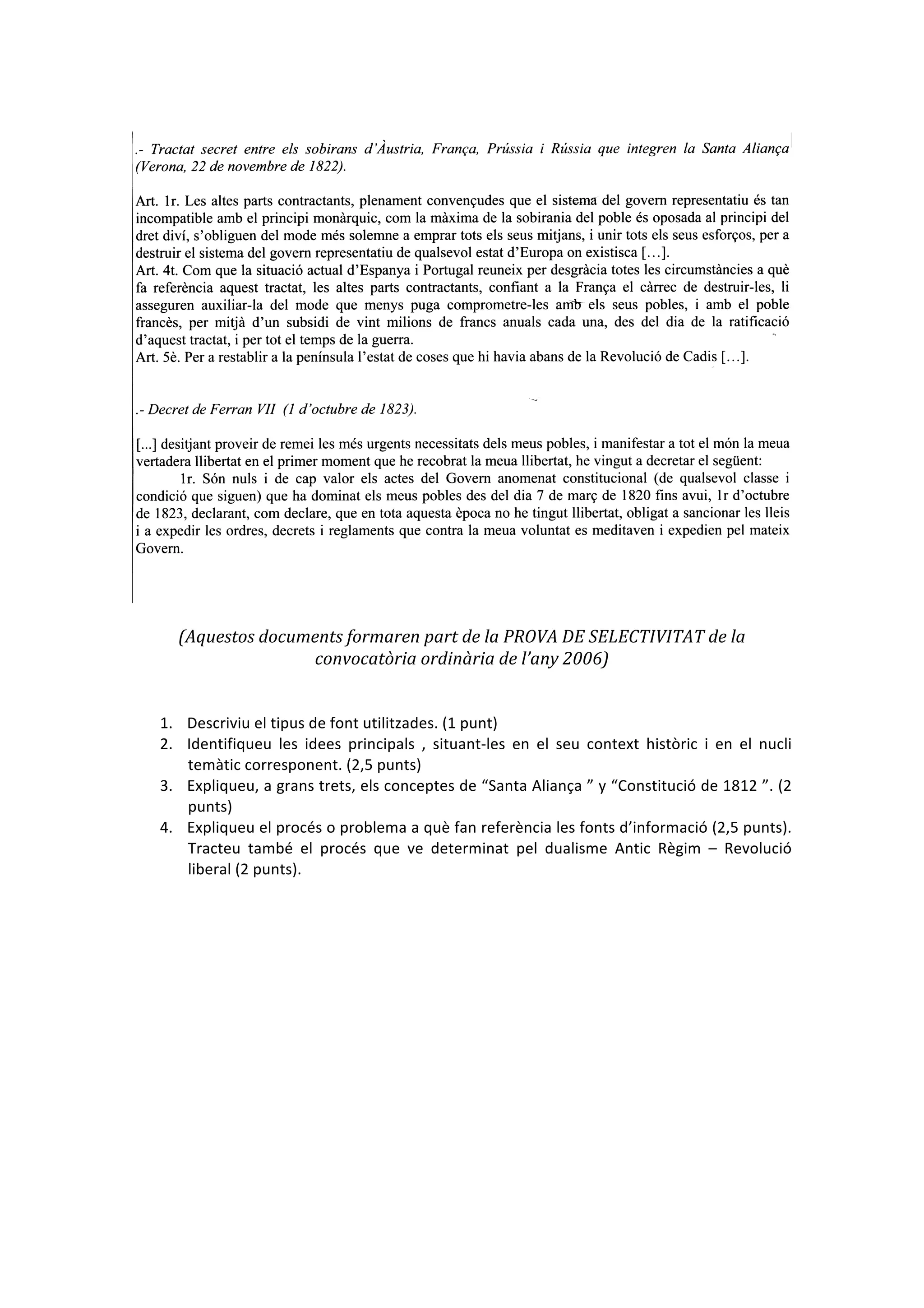 3. Expliqueu, a grans trets, els conceptes de “Santa Aliança ” y “Constitució de 1812 ”. (2