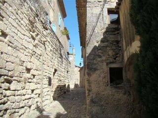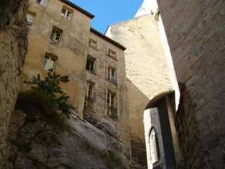 Les Baux deProvence כפר תלוי ובו מחצבות של מינראל הבוקסית , המשמש בייצור האלומיניום . במחצבה עזובה מוצג מחזה אור קולי בשם " Cathedrale D’Images ".
