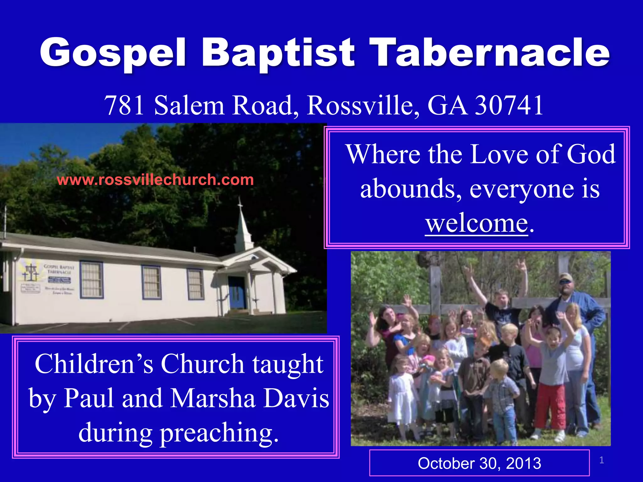 This document contains the order of service for Gospel Baptist Tabernacle on October 30, 2013. It includes a welcome message, information about children's church being taught by Paul and Marsha Davis, and 12 passages from the bible with brief summaries or commentary on each passage related to working hard, valuing what you earn, making wise choices, and living according to God's word.