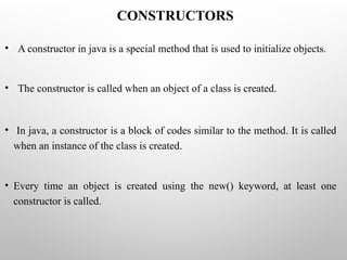 • A constructorin java is a special method that is used to initialize objects.