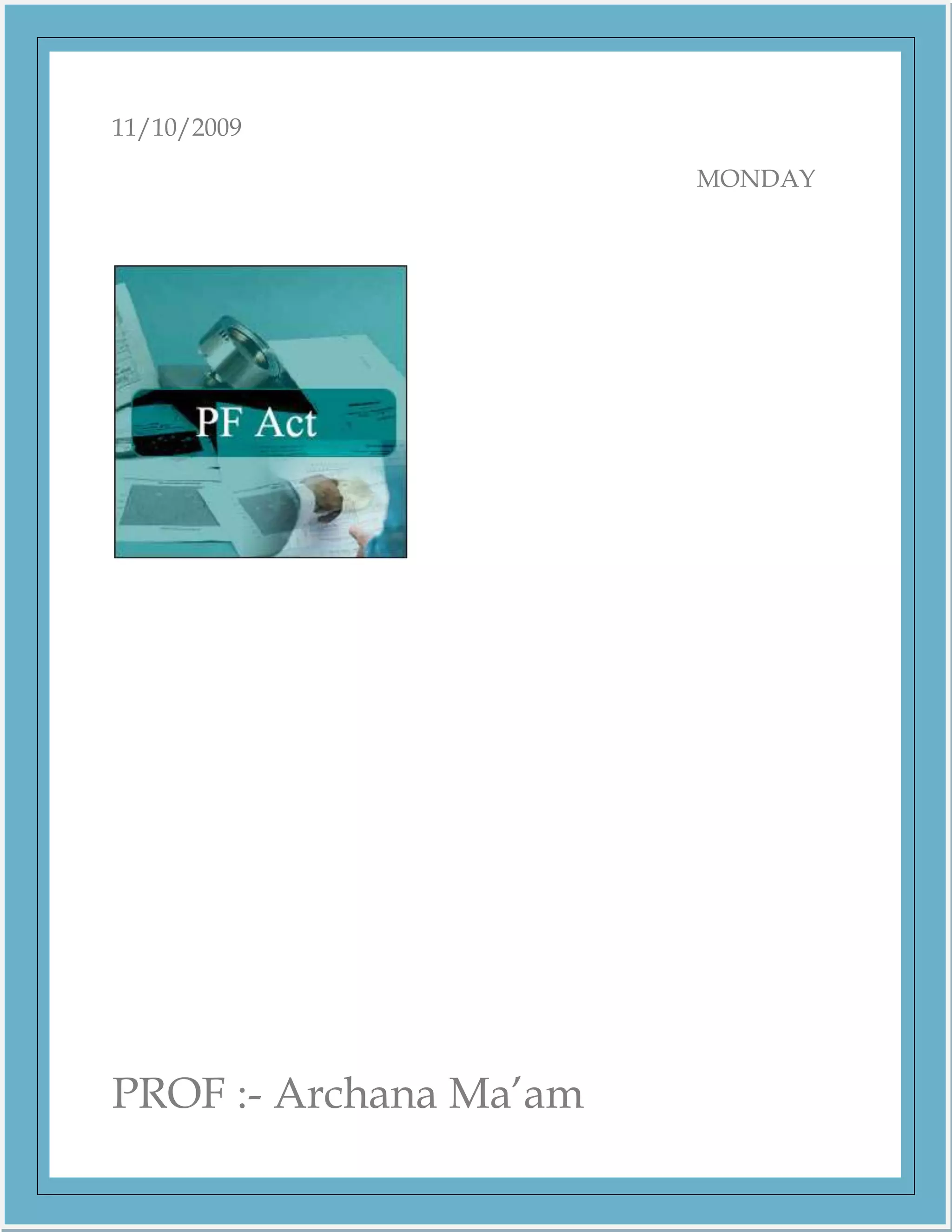 The document outlines definitions and provisions related to the Employees' Provident Fund Act of 1952 in India, including defining terms like employer, employee, wages, and establishing provident funds. It discusses the establishment of a Central Board to administer the funds and an Executive Committee to assist it. State boards may also be constituted to exercise powers assigned by the Central Government.