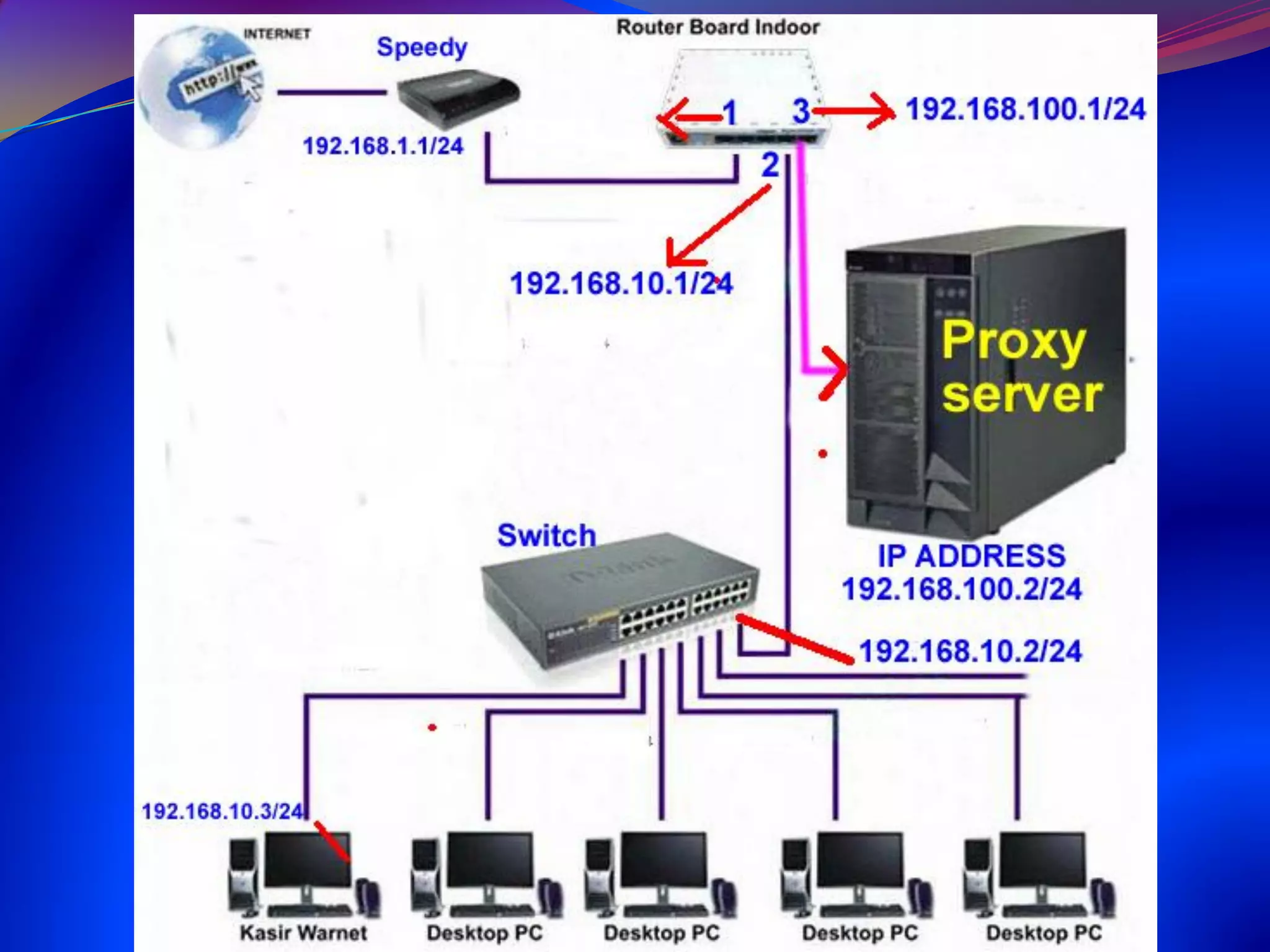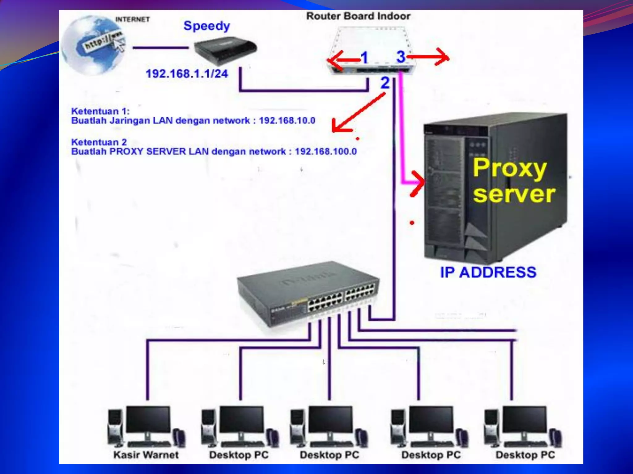 Dokumen tersebut merangkum tentang proxy server, yaitu server yang berfungsi menyimpan paket dari internet dan menyimpannya di server lokal untuk mempercepat akses client ke web server. Proxy server juga digunakan untuk meningkatkan security, logging, accounting, dan performance. Squid adalah contoh aplikasi proxy server berbasis Linux yang sering digunakan.