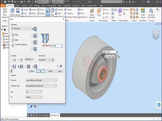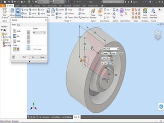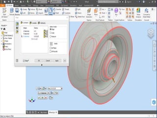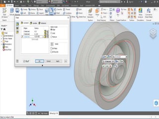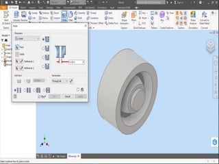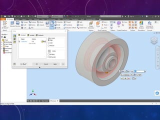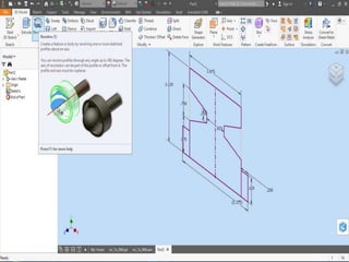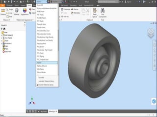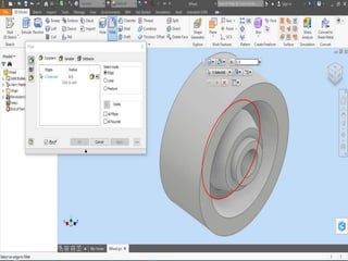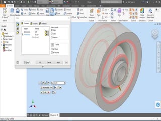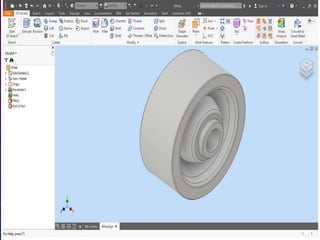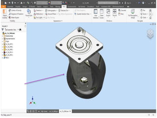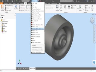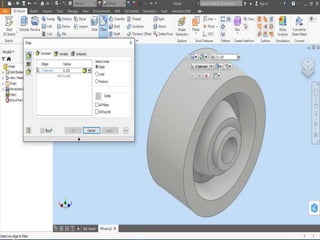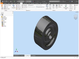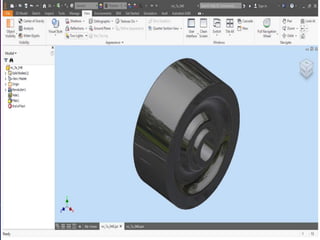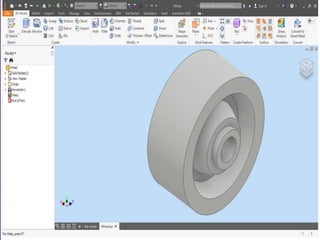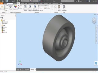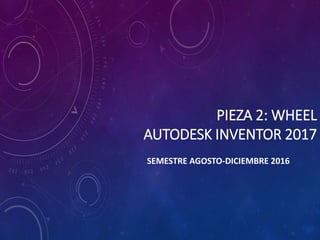 Il documento descrive un progetto utilizzando Autodesk Inventor 2017 per il semestre agosto-dicembre 2016. Esso comprende la creazione di un componente chiamato 'wheel' e introduce tecniche di modellazione come il giro (revolve, revolution) e il redondeo (fillet) per la seconda e terza parte del progetto.