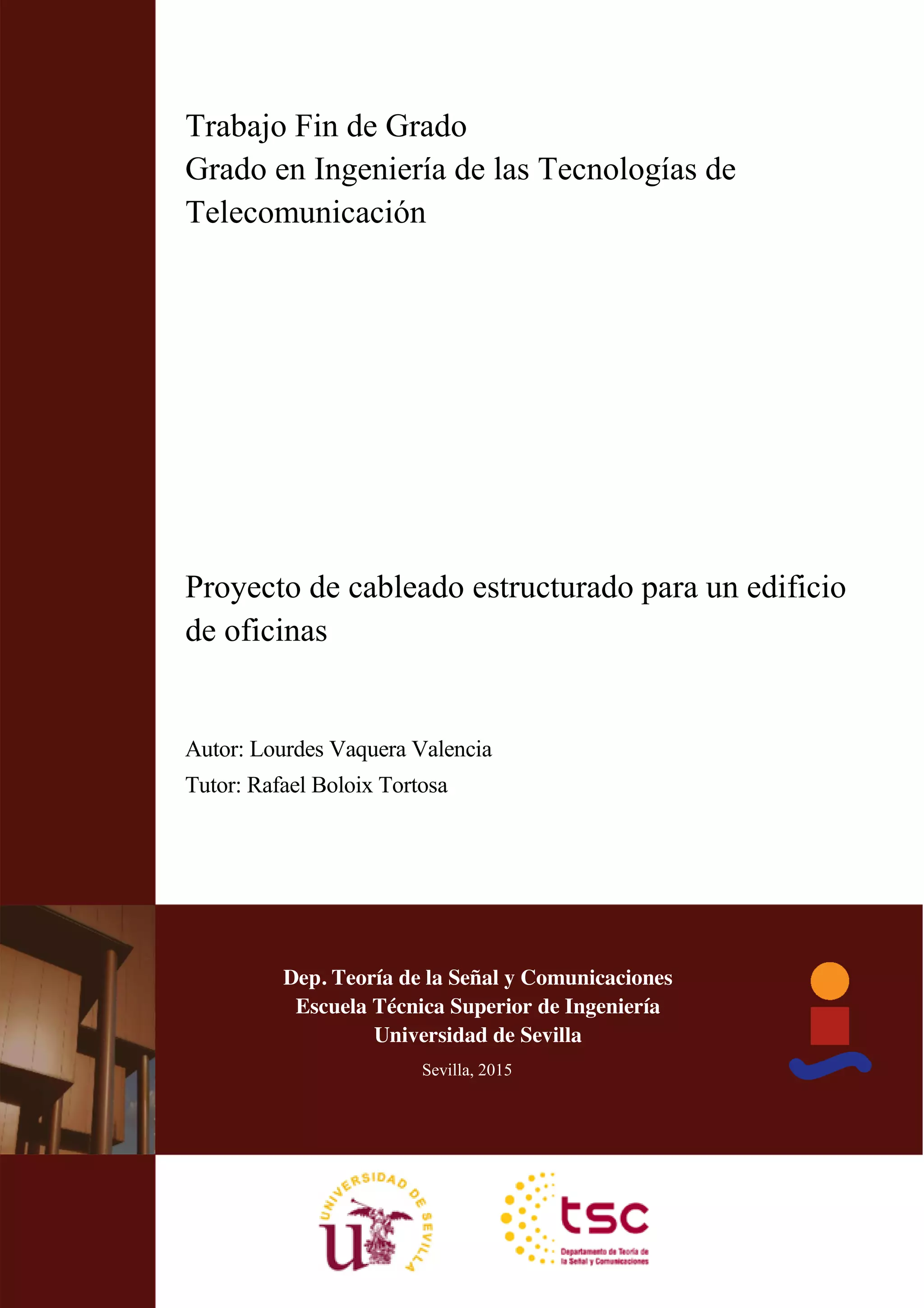 This document presents the project for the structured cabling system of an office building in Spain. It begins with acknowledgments and an abstract in English. It then outlines the objectives, contents and index of the project report. The report will include designs for access control, video surveillance, Wi-Fi network, the structured cabling system, specifications, budget, and conclusions. Diagrams and specifications for various components will be provided. The goal is an integrated system for voice, data, video and other services with easy administration, low costs, long life and wide bandwidths.