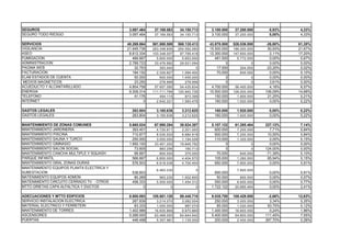 Il documento presenta il budget per l'anno 2011 della Urbanización Canta Piedra, evidenziando entrate e spese dettagliate. Le entrate totali ammontano a 910.200.766, con un decremento del 5,70% rispetto all'anno precedente, mentre le spese operative ammontano a 830.428.529, con un incremento del 2,32%. Si registra un saldo negativo di -315.201, indicando un deficit significativo per l'esercizio.