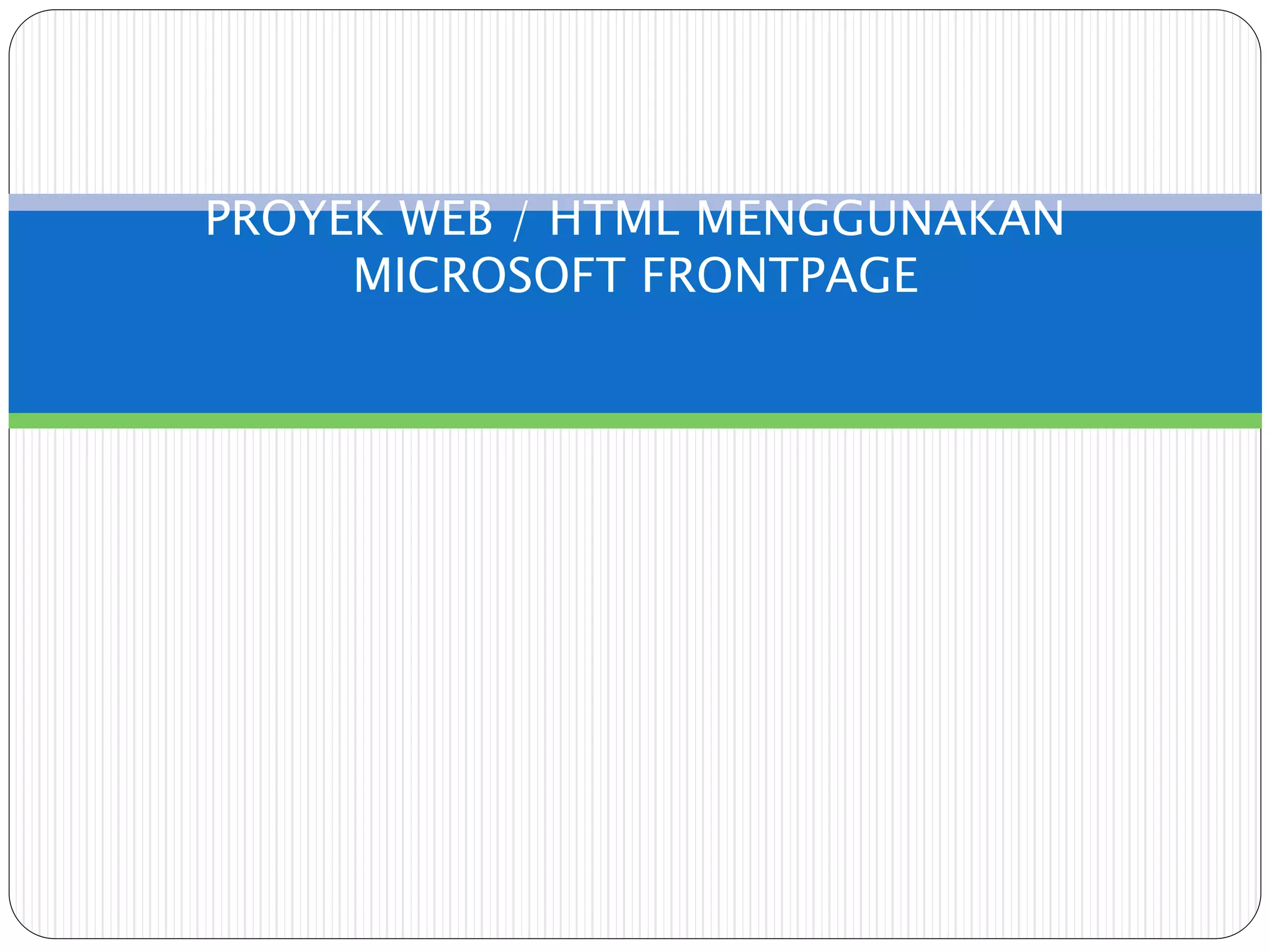 Dokumen ini menjelaskan tentang penggunaan Microsoft FrontPage untuk membuat dan mendesain situs web dengan menggunakan HTML. Langkah-langkah yang diperlukan mencakup pembuatan daftar kebutuhan, pengorganisasian informasi, penentuan struktur, dan penggunaan elemen serta tag HTML. Selain itu, juga dibahas kelebihan dan kekurangan FrontPage serta bagian-bagian penting dari dokumen HTML.