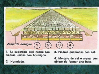 Les construccions romanesfaran servir l’ arc i la volta . Tamb é van fer servir la cúpula , que va donar als seus edificis una gran amplitud i grandiositat. En la major ia de construccions van utilitzar el maó cuit i una pasta semblant al ciment . En els edificis més luxosos aquests materials es recobrien amb tova pintada o de marbre . 15