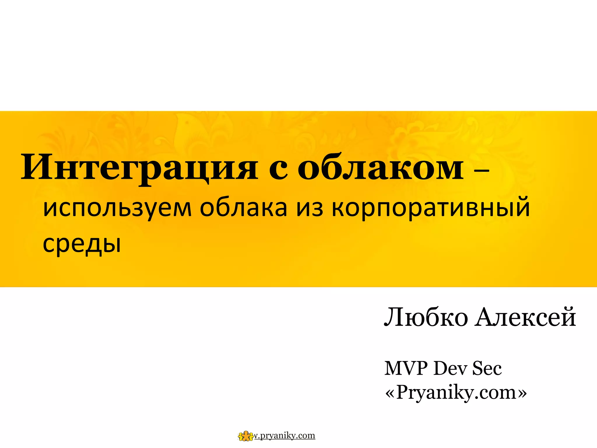 Документ обсуждает интеграцию облачных технологий в корпоративной среде, акцентируя внимание на аутентификации пользователей и безопасности данных. Приведены различные методы аутентификации через Active Directory Federation Services и Azure Access Control. Также содержится контрольный список для настройки ADFS и рекомендации по управлению данными в облаке, включая классификацию и доступ к ним.