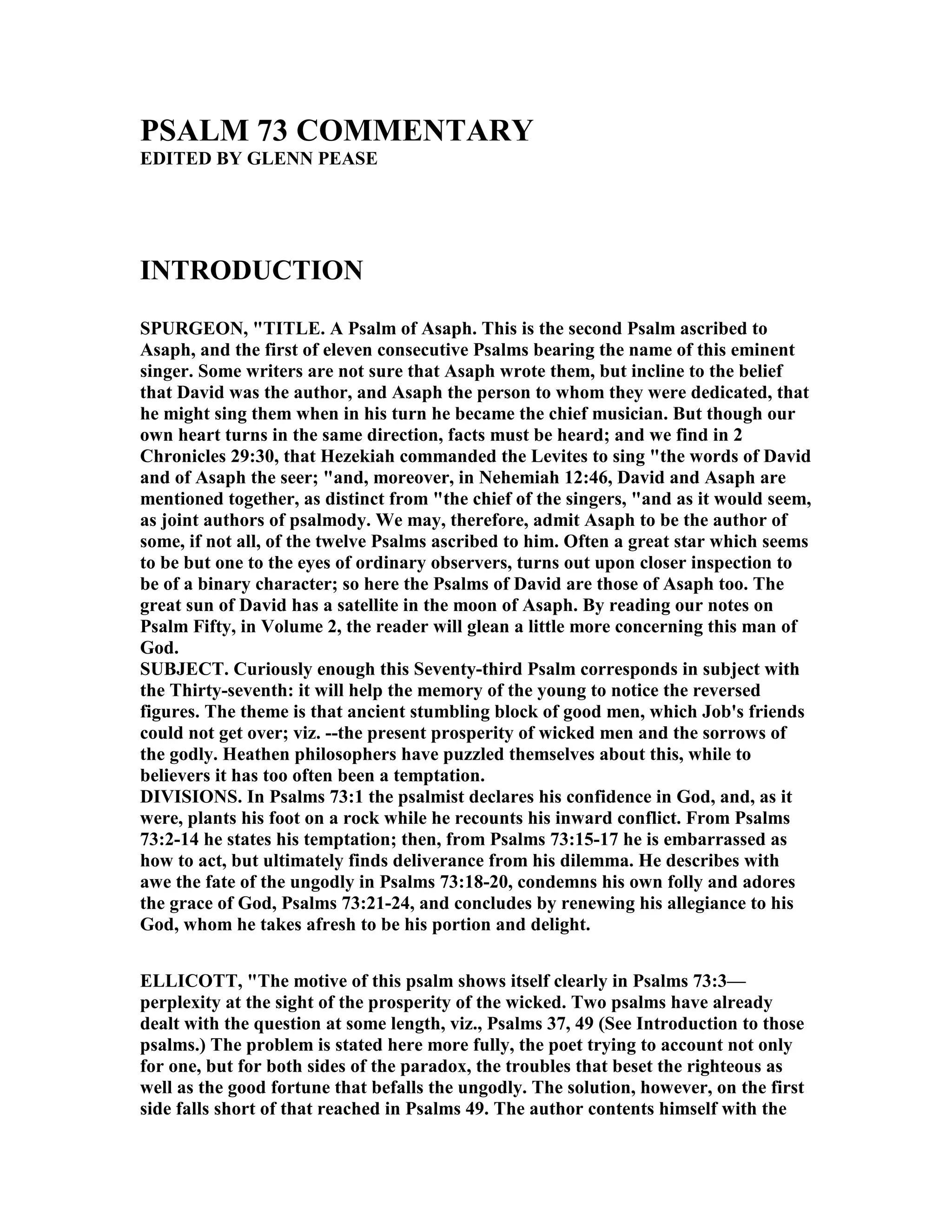 This document provides commentary on Psalm 73 from multiple scholars and theologians. It includes: