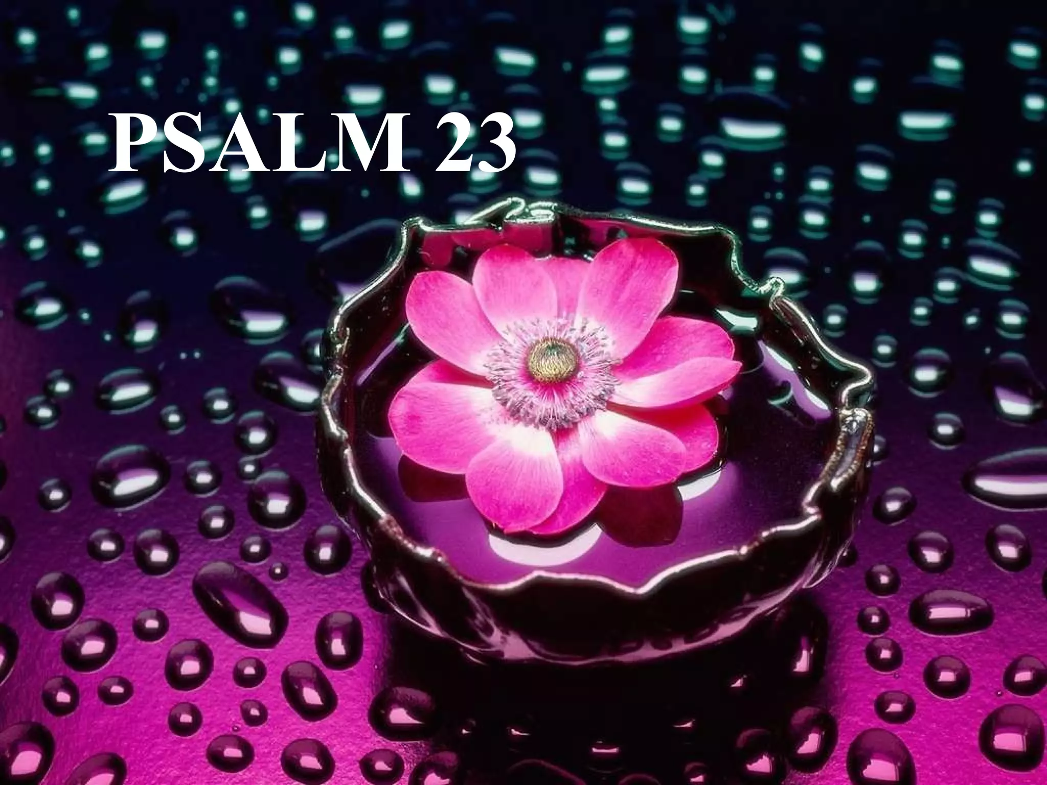 The Lord is described as a shepherd who cares for his flock. He provides rest in green pastures and refreshment by still waters, restoring the soul of his followers. Even in the darkest of times, the shepherd's rod and staff bring comfort, and a feast is prepared in the presence of enemies. God's goodness and unending love follow his people forever in his house.