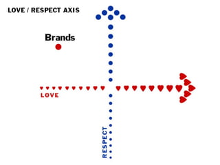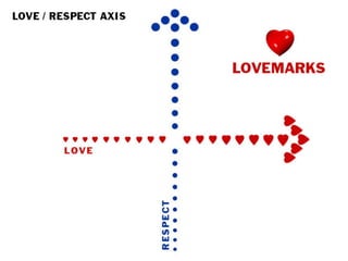 The document discusses new marketing strategies for brands in the Web 2.0 era, focusing on the concept of "Lovemarks" introduced by Kevin Roberts. Roberts argues that brands must move beyond being recognized to being loved by consumers through mystery, passion, and emotional storytelling. Successful brands will form deep emotional connections and be "owned" by their fans rather than controlled by the company. The document provides several examples and strategies for creating Lovemarks, including social media marketing and leveraging consumer-generated content.