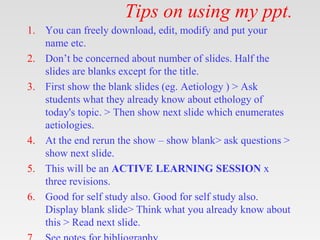 This document provides tips for using a PowerPoint presentation (ppt). It recommends: