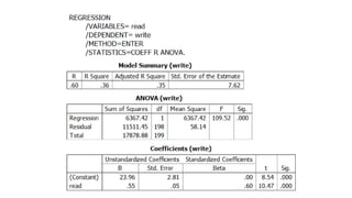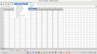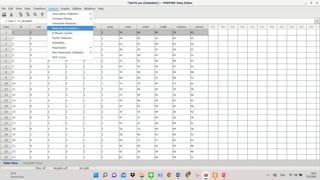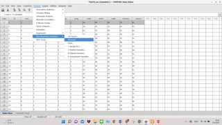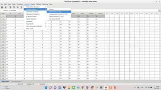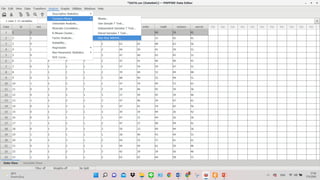The document provides an overview of PSPP software and statistical analysis techniques, including: