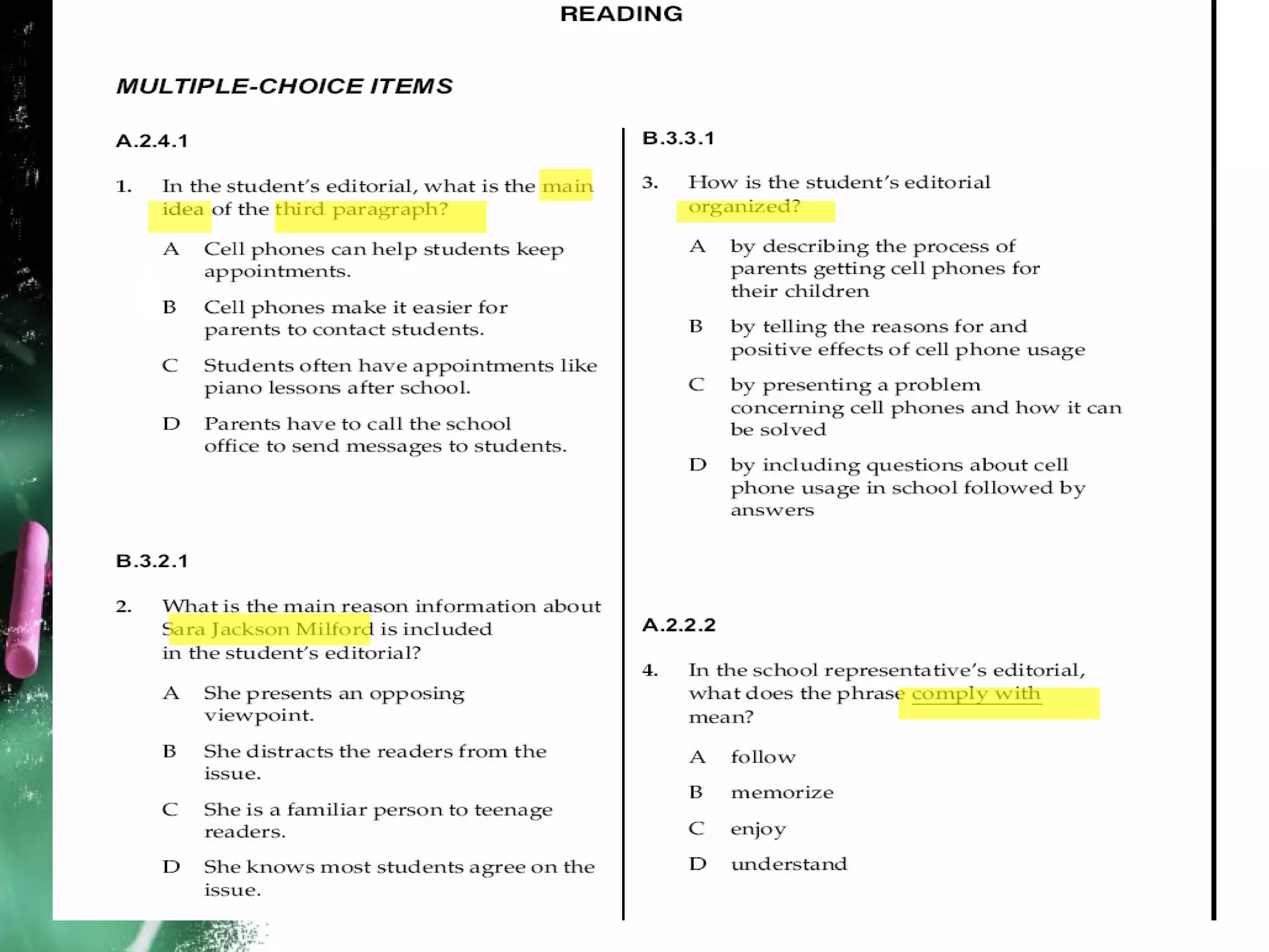 The document provides strategies for taking multiple choice and constructed response questions on the PSSA test. It recommends being well-rested and eating breakfast to be physically prepared. Mentally, students should understand the test format and actively read passages by highlighting and taking notes. Strategies include scanning questions before reading, highlighting key details, and using context clues. When answering questions, students should not trust their memory and should return to the text for evidence.