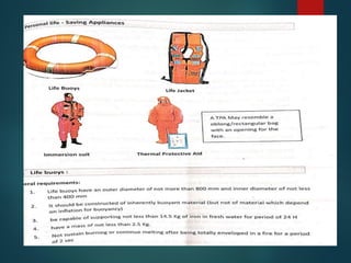 Similar to FFA each ship is well provided with appliances and survival craft for saving of all on board in case the