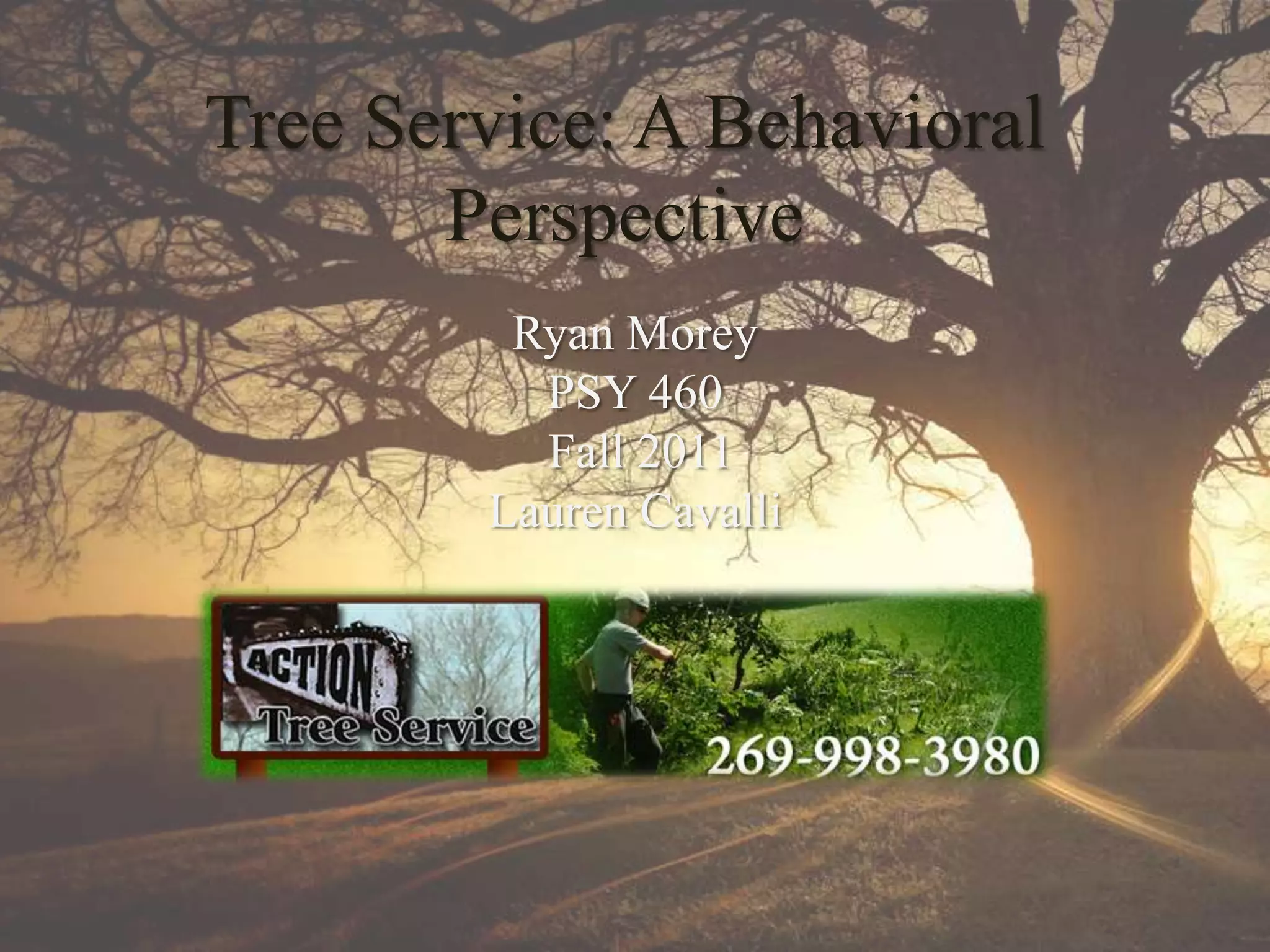 This document describes a proposed behavioral intervention to increase the use of hard hats among workers at a tree service company. It analyzes the current contingencies that discourage hard hat usage and lack of supervision. The intervention would provide smoke breaks contingent on workers wearing hard hats, with monitoring by foremen and self-monitoring. An evaluation graph shows hard hat usage increasing from baseline levels during the intervention. A hypothetical recycle would involve stricter monitoring and loss of bonuses for non-compliance.