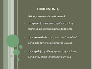ΠΕΡΙΕΧΟΜΕΝΟ ΕΠΙΚΟΙΝΩΝΙΑ (ΤΝΕΧΕΙΑ)