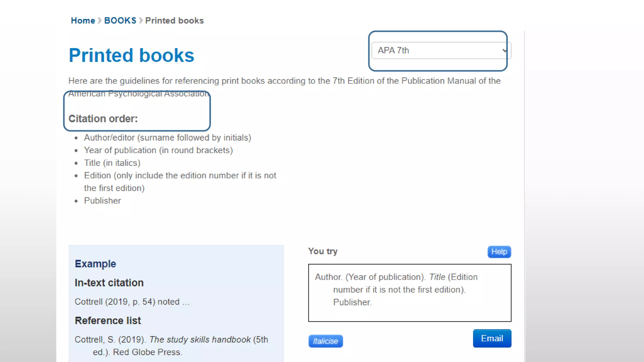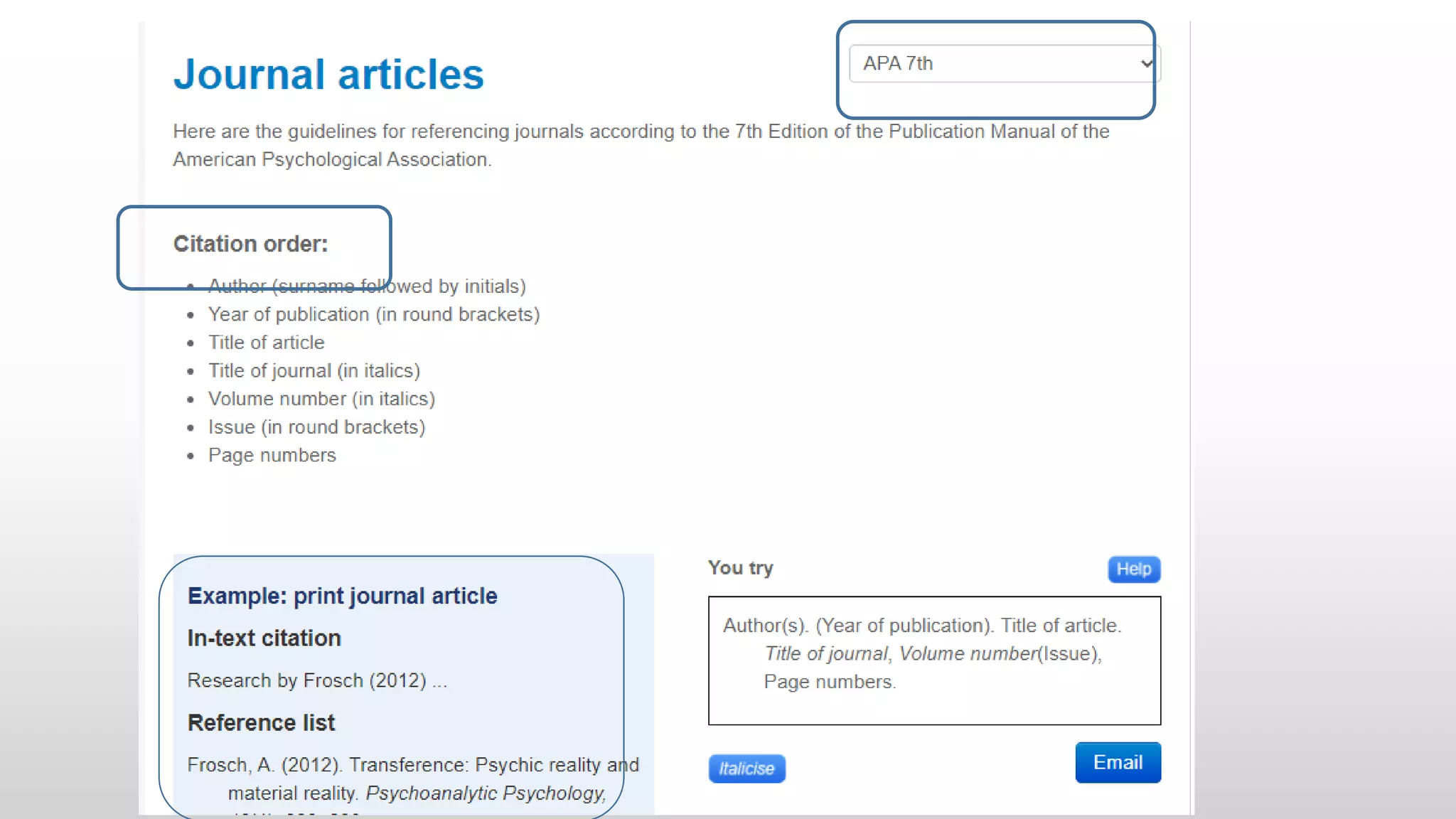This document provides information about referencing using APA style and evaluating information sources. It discusses evaluating sources for trust, quality, authorship, appropriateness, and purpose. It defines citations and references, explaining that citations appear in the text and direct the reader to full references in the reference list. Referencing is important to give credit, demonstrate research, and avoid plagiarism. The document provides examples of citations and references in APA style and tips for getting help with referencing.