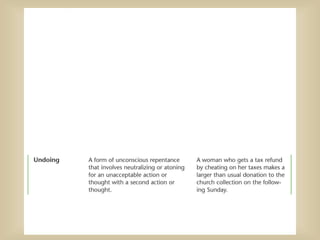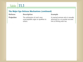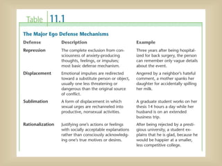 Sigmund Freud developed the first comprehensive theory of personality called psychoanalytic theory. He proposed that personality is formed by unconscious drives and motivations, especially those relating to childhood experiences and the resolution of psychosexual stages. According to Freud, the mind is divided into the conscious, preconscious, and unconscious. The unconscious contains unacceptable urges that are expressed through defense mechanisms. Freud also described personality as being comprised of the id, ego, and superego, and proposed five psychosexual stages through which a child's libido develops.