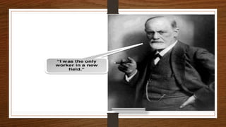 Sigmund Freud developed psychodynamic theory and psychoanalysis. As the founder of psychoanalysis, Freud proposed that personality comprises three parts - the id, ego, and superego. He believed personality develops through psychosexual stages from infancy to adulthood. Freud's theory focuses on the dynamic interplay between conscious and unconscious motivations and how early life experiences shape adult personality and behavior.