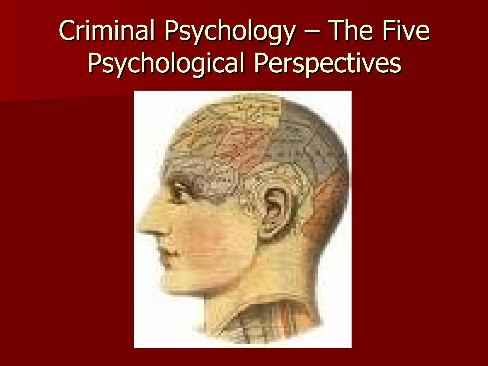 The document discusses five major psychological perspectives relevant to criminal psychology: