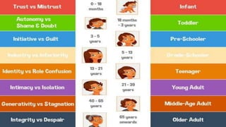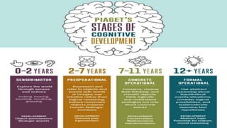 This document discusses several key concepts in educational psychology and cognitive development. It covers cognitive learning processes like cognitive development, growth mindset, prior knowledge, and limits of stage theories. It also discusses facilitating context, practice, feedback, self-regulation, and fostering creativity in students. Other sections cover intrinsic motivation, mastery goals, performance goals, teacher expectations, goal setting, social contexts, interpersonal relationships, emotional dimensions, classroom conduct, expectation and support, formative and summative assessment, understanding growth and development, theories of development like Freud, Piaget, Erikson, Kohlberg, Vygotsky, and individual differences.