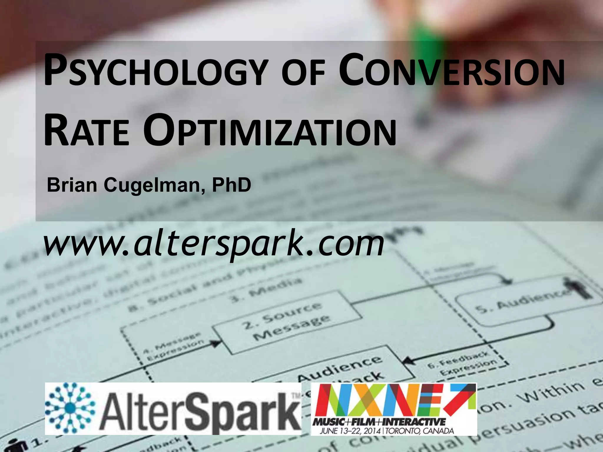 The document discusses the psychology of conversion rate optimization, emphasizing the importance of persuasive psychology and behavior change technologies. Brian Cugelman, the presenter, outlines various strategies and models for optimizing digital products and enhancing user engagement through evidence-based practices. It covers different types of optimization experiments and the significance of measuring success through well-defined variables.