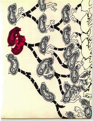 1) Mutations occasionally arise in creatures that cause them to differ physically from others of their species. 2) Natural selection is the process by which features that help a creature survive are passed on to offspring, while less helpful features tend to die out. 3) Over many generations, successive helpful mutations accumulate in a species through natural selection, allowing creatures to evolve new traits that enhance their chances of surviving and reproducing in their environment.