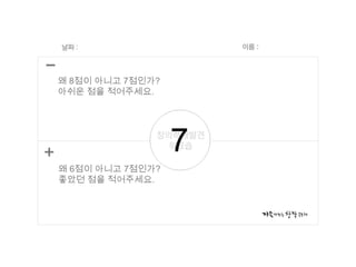 왜 8점이 아니고7점인가?아쉬운 점을 적어주세요.7왜 6점이 아니고 7점인가?좋았던 점을 적어주세요. - 43.