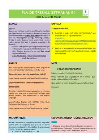 Hola nois/esde 6è peraquestasetmanausconvidem