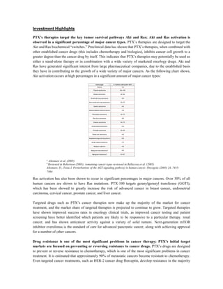 Prescient Therapeutics is an Australian clinical-stage biotech company developing novel cancer therapies targeting the Akt and Ras tumor survival pathways. PTX has two drug candidates, PTX-200 and PTX-100, in five clinical trials for breast cancer, ovarian cancer, acute myeloid leukemia, and multiple myeloma. Near-term data readouts from ongoing trials in 2016 could increase the stock price if results are positive. The company's therapies aim to prevent or reverse drug resistance, a major problem in cancer treatment.
